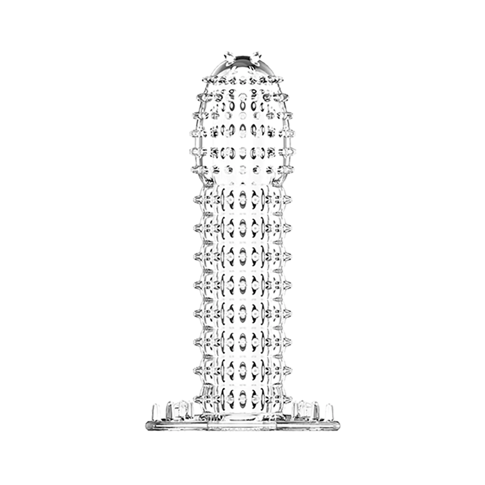 Capa extensora peniana com texturas e base para estimulação do clítoris. Ela se adapta a qualquer tamanho e circunferência de pênis. Experimente!