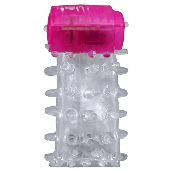 Meia Capa Peniana com mini cápsula vibratória com poder de estimular a região clitoriana e auxiliar no prolongamento da sua ejaculação. Ideal para você que deseja uma noite mais longa. Ele é feito em silicone macio e flexível, se ajustando em qualquer tamanho de pênis.